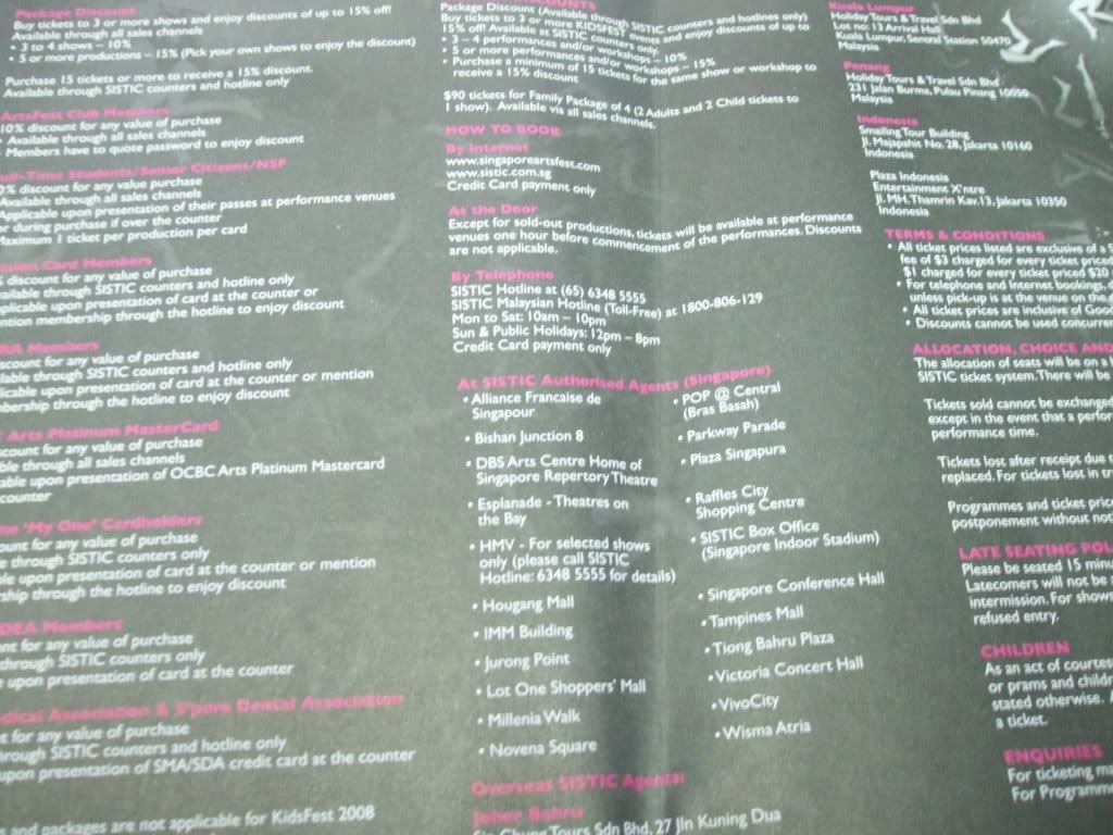 As some programmes may be quite expensive, discount privileges were given to certain members such as SAFRA members, PAssion Card members etc. Package discount were also implemented for people who buy 3 or more tickets. This way, it targets at families and friends to watch together.