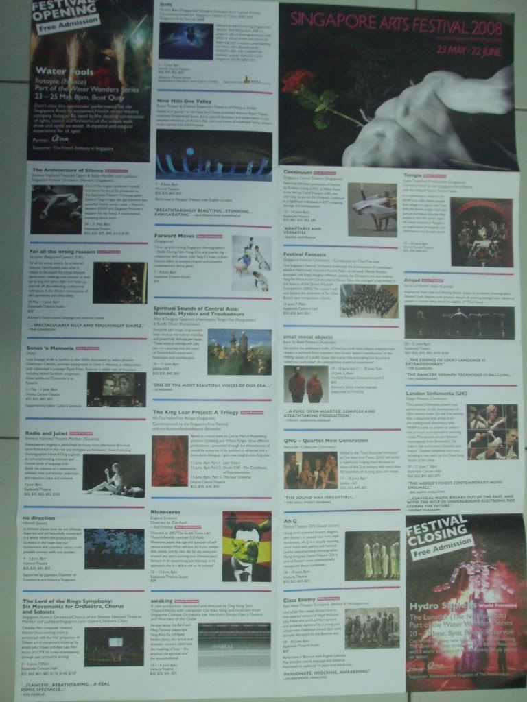 In conclusion, Singapore Arts Festival is one of the successful events in Singapore and with NAC promoting the event in the internet; it can create a better advertising method not only to Singaporeans but also to the tourists as information about the event can be retrieve easily. The recent released report of Arts Festival 2008 shows that the festival received a positive response. I believe that even in future, the Singapore Arts Festival will still remain as one of the biggest arts festival in Singapore, as popular as before.